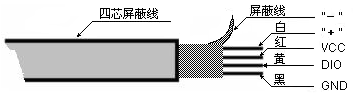 白色(或綠色)芯線接XS2接線柱的+端,屏蔽線接-端,紅色芯線接VCC(1腳),黃色芯線接DIO(2腳),黑色芯線接GND(3腳),探頭接線板對(duì)應(yīng)連接;