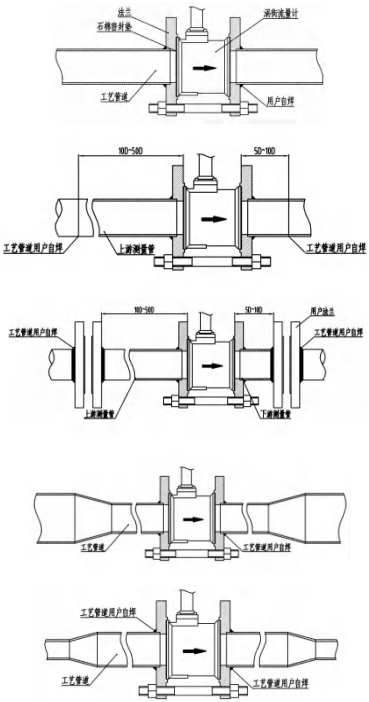 5.法蘭與管道點焊定位后,拆除流量計,不允許與流量計焊接