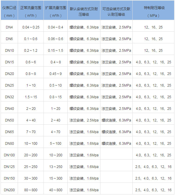 三、小口徑渦輪流量計技術參數(shù)