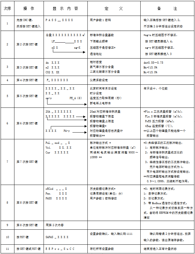 留意事項(xiàng):(1)參數(shù)設(shè)置時(shí),只要在*后屏幕呈現(xiàn)EEPro_suCC后進(jìn)入正常計(jì)量狀態(tài)才正確存入,否則設(shè)置無效。