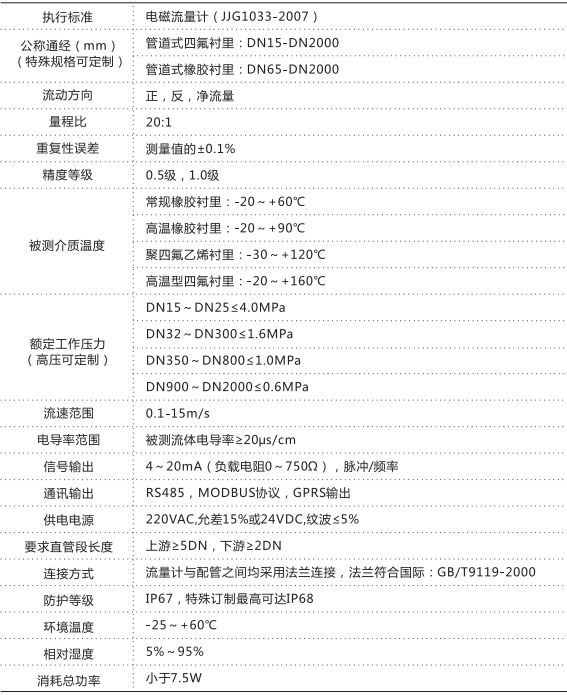 三、電池供電電磁流量計(jì)的主要技術(shù)參數(shù)